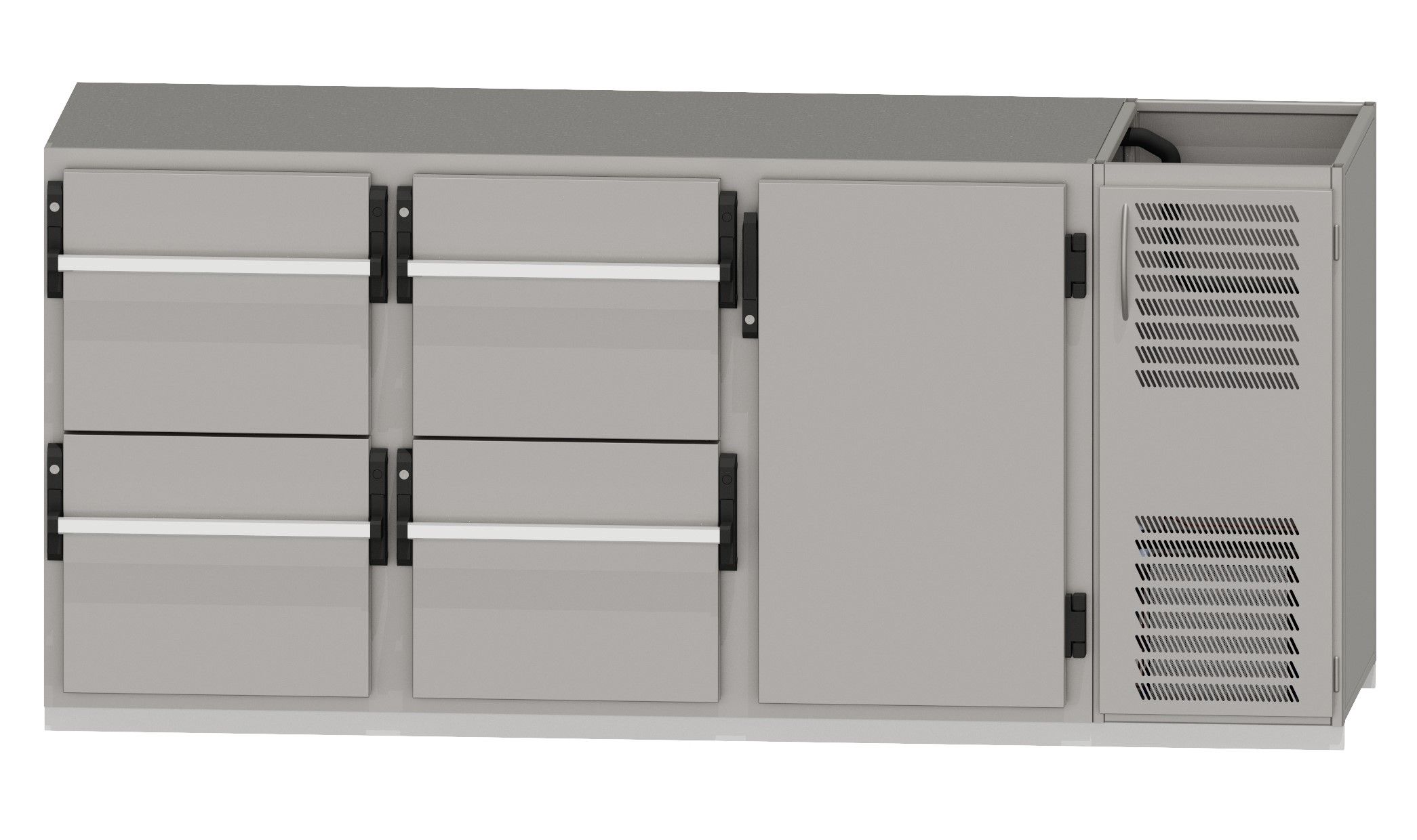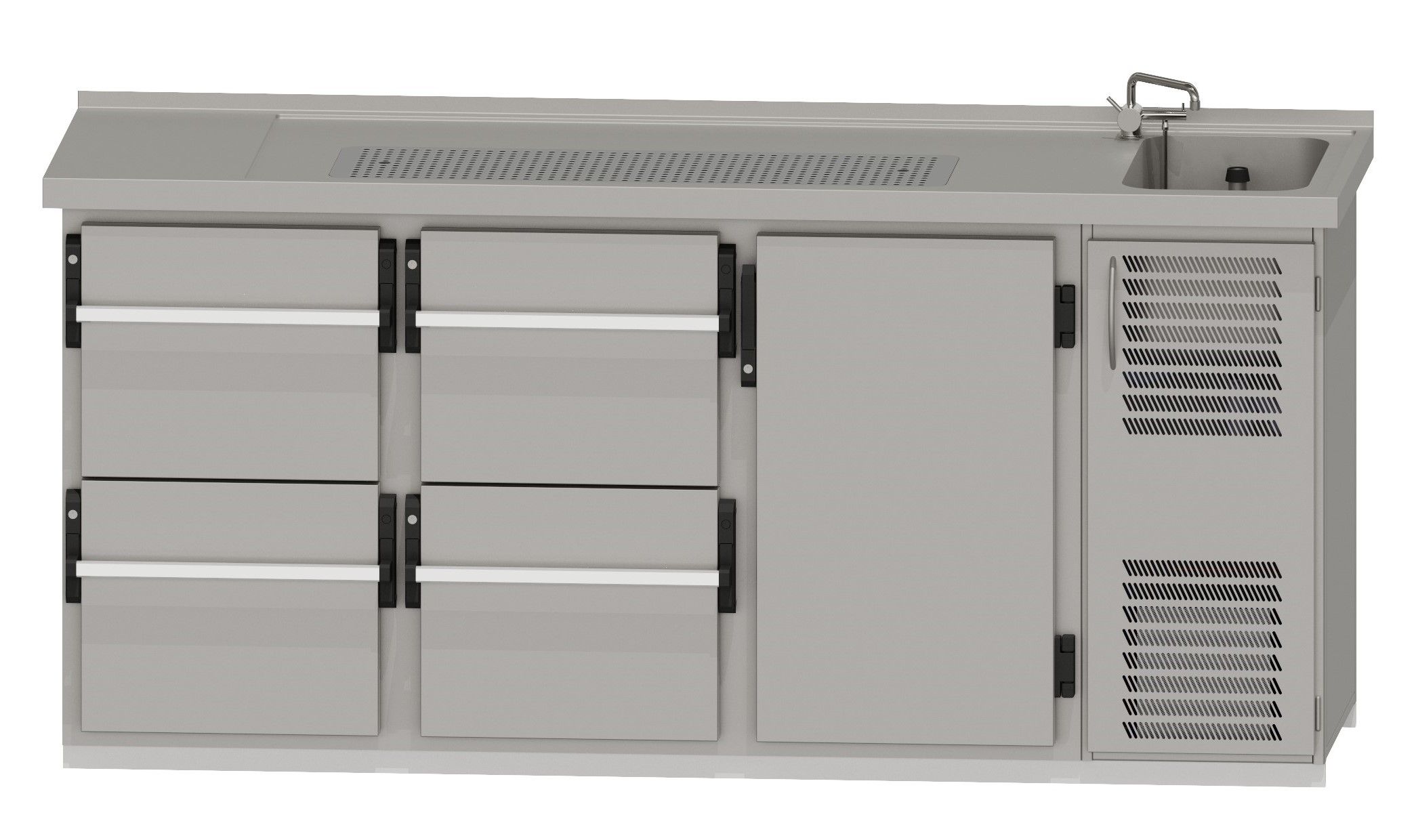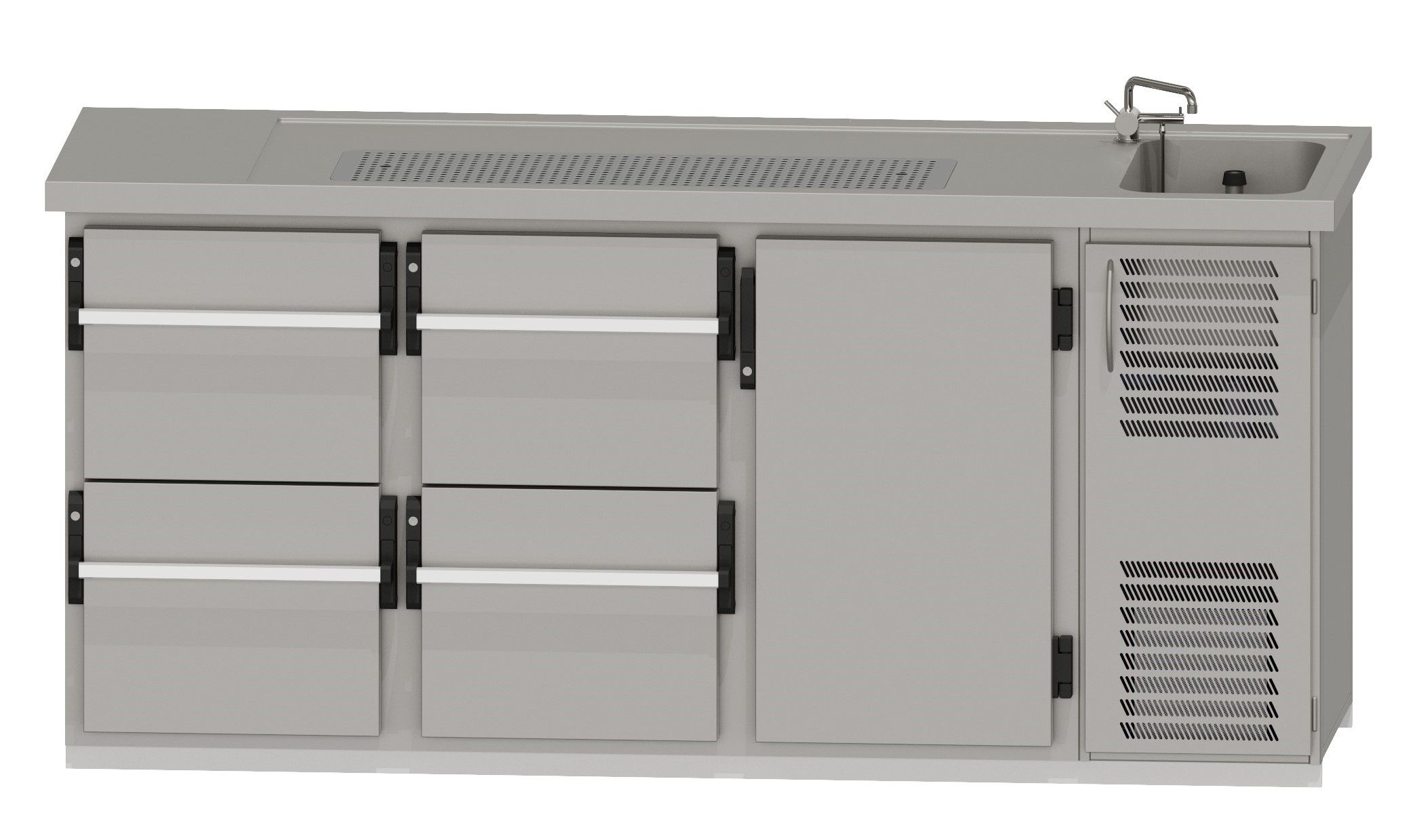RWM 2100 G ∙ 1 Becken rechts2 CNS-Doppelauszüge, 1 Drehtür
