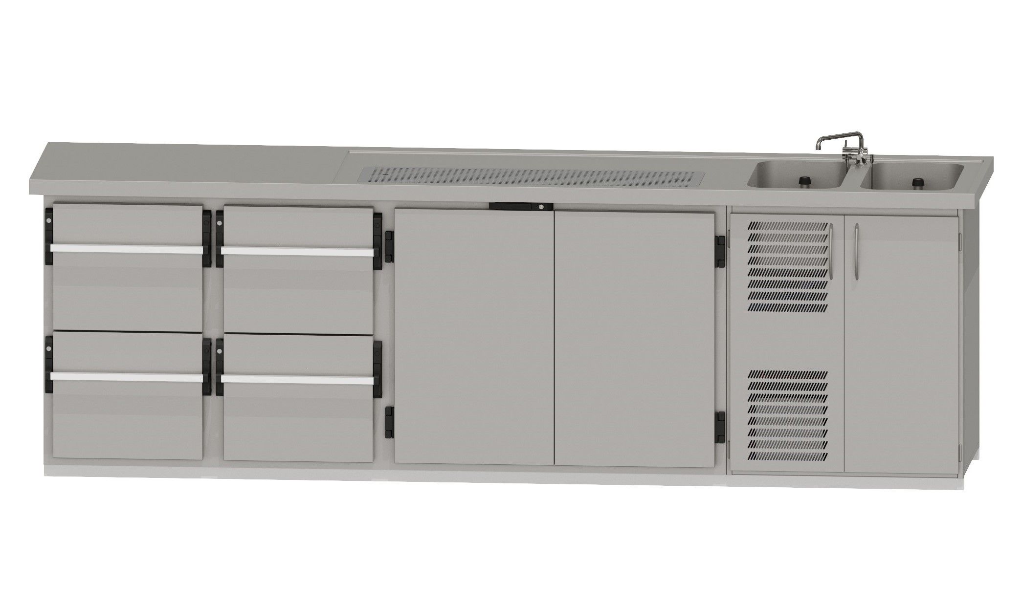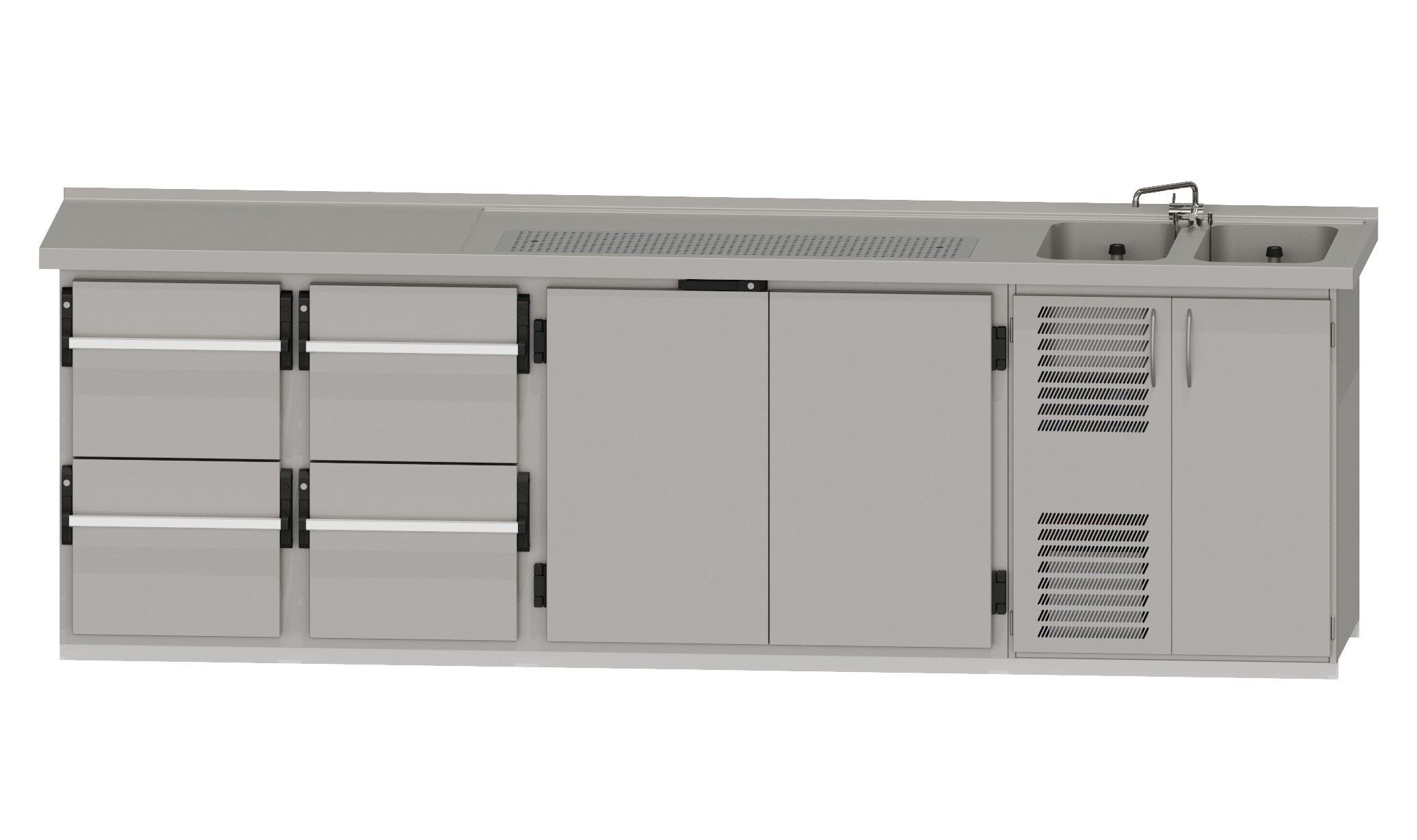 RWM 3050 G ∙ 2 Becken rechts2 CNS-Doppelauszüge, 1 Doppeltür