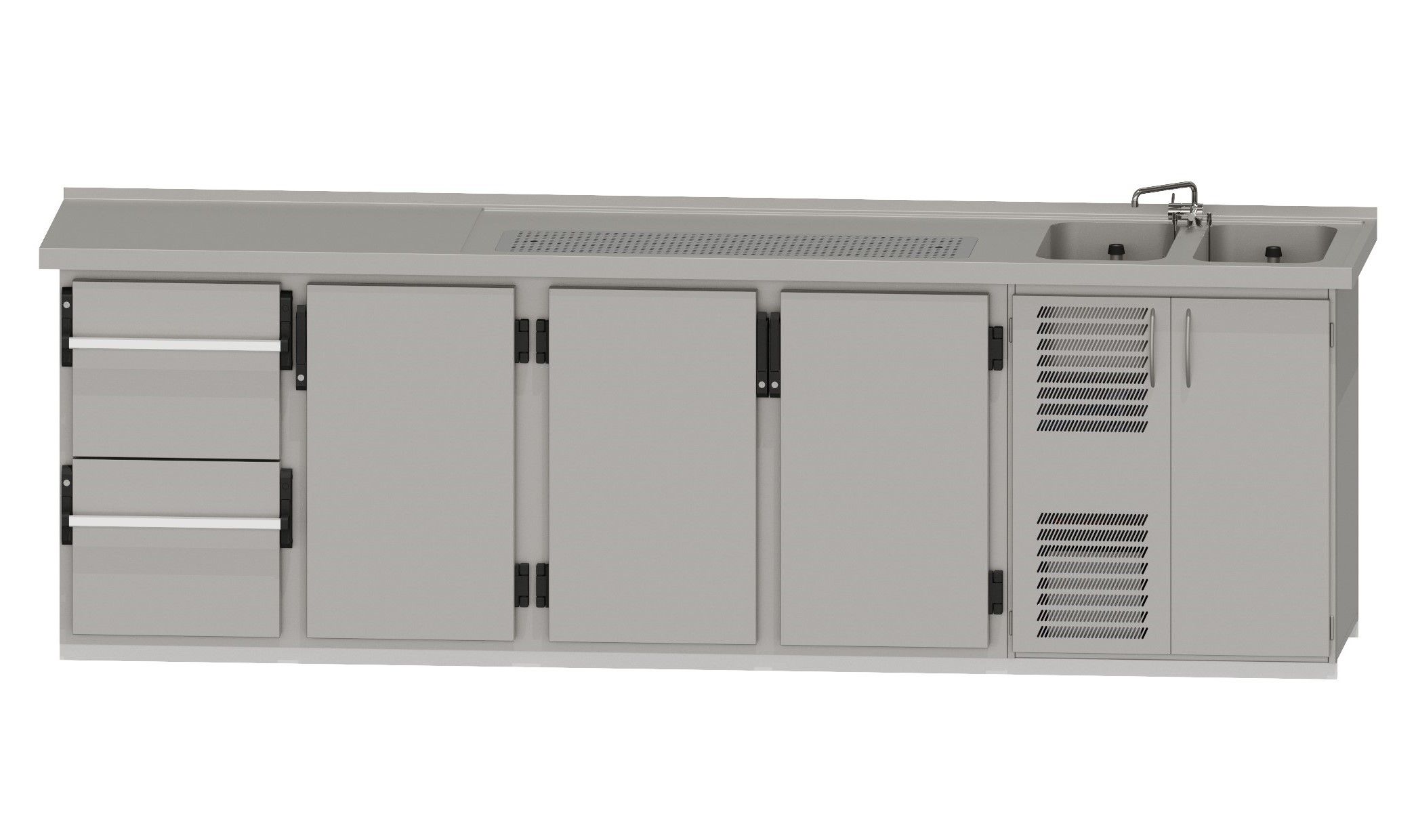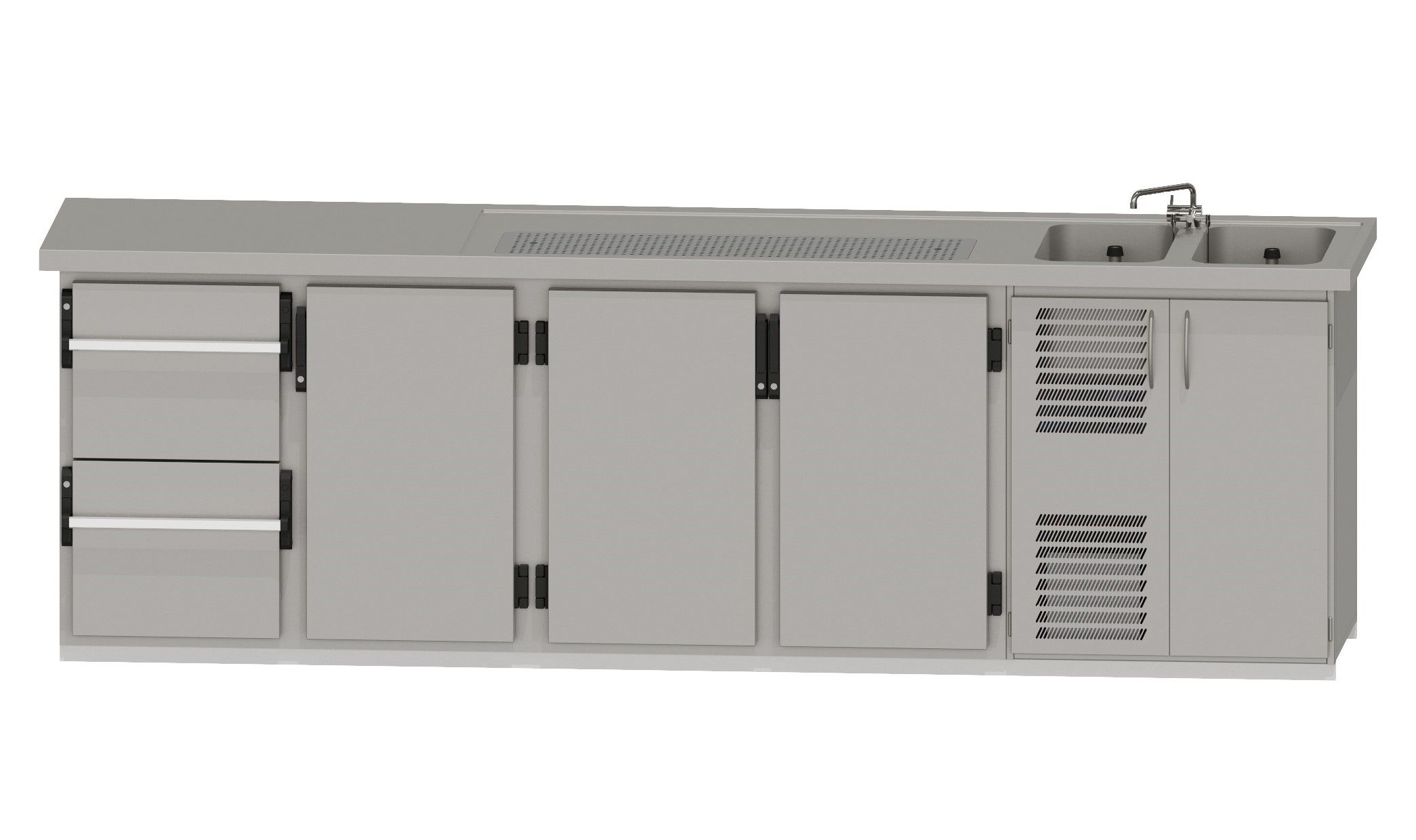 RWM 3050 G ∙ 2 Becken rechts1 CNS-Doppelauszug, 3 Drehtüren