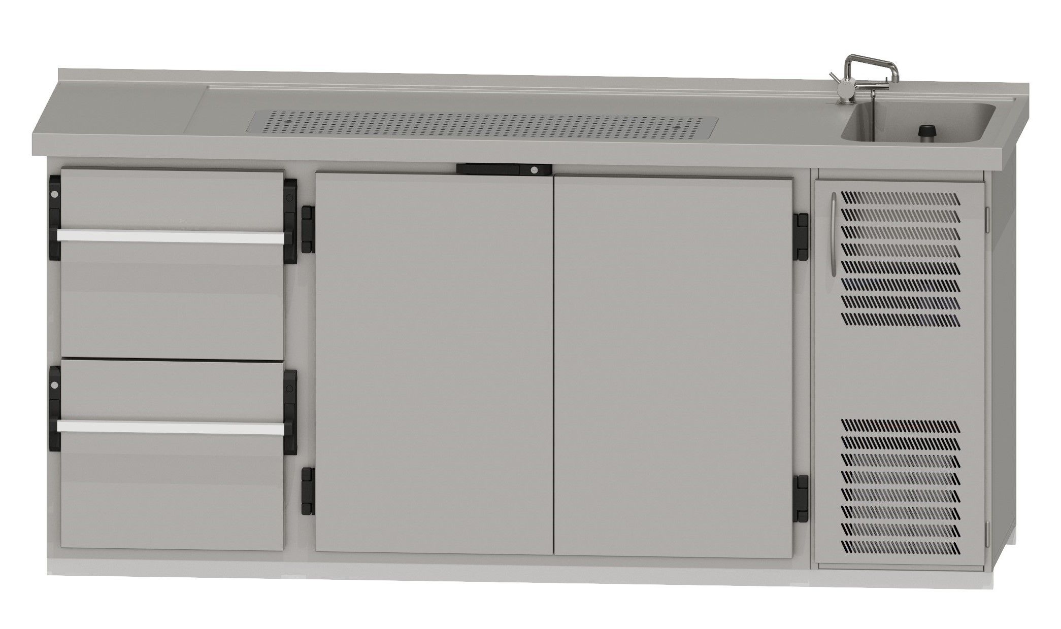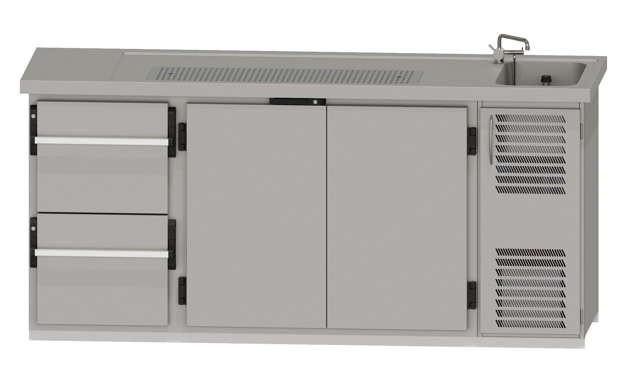 RWM 2100 G ∙ 1 Becken rechts1 CNS-Doppelauszug, 1 Doppeltür