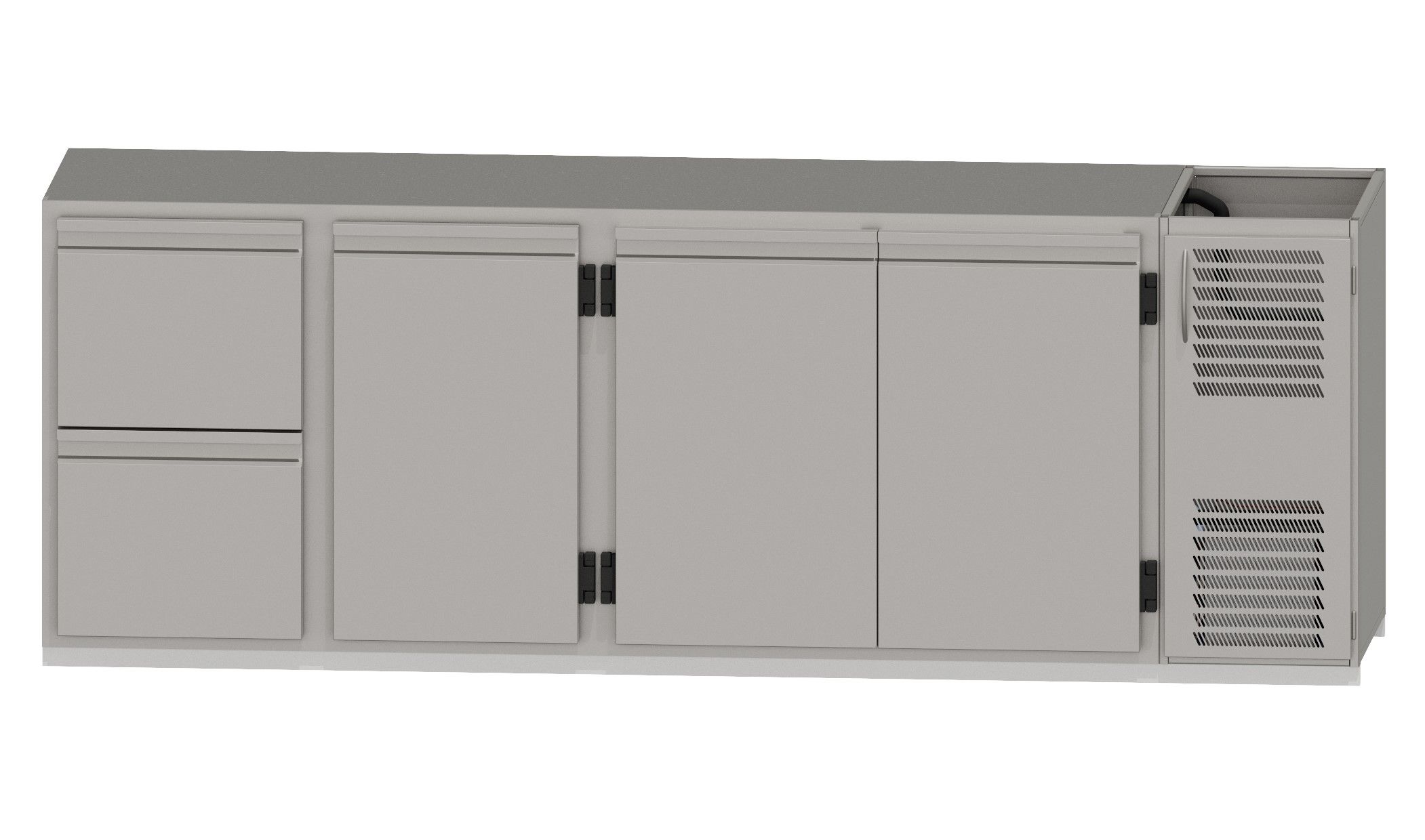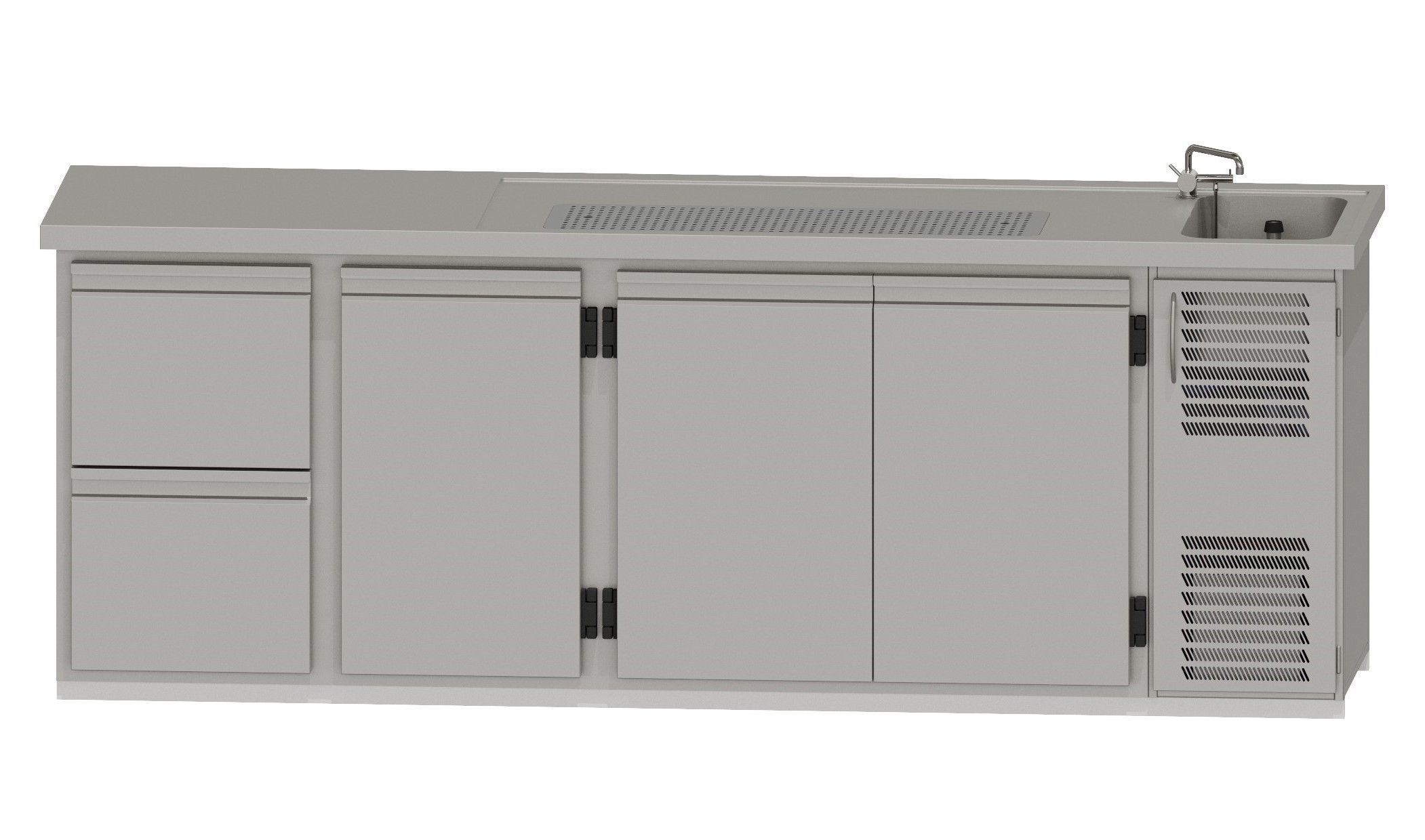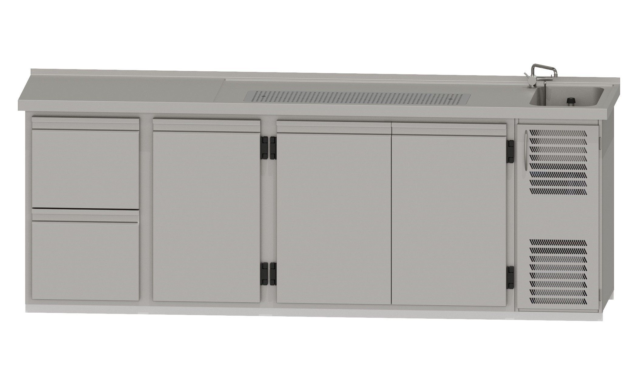 RWM 2650 E ∙ 1 Becken rechts1 CNS-Doppelauszug, 1 Drehtür, 1 Doppeltür