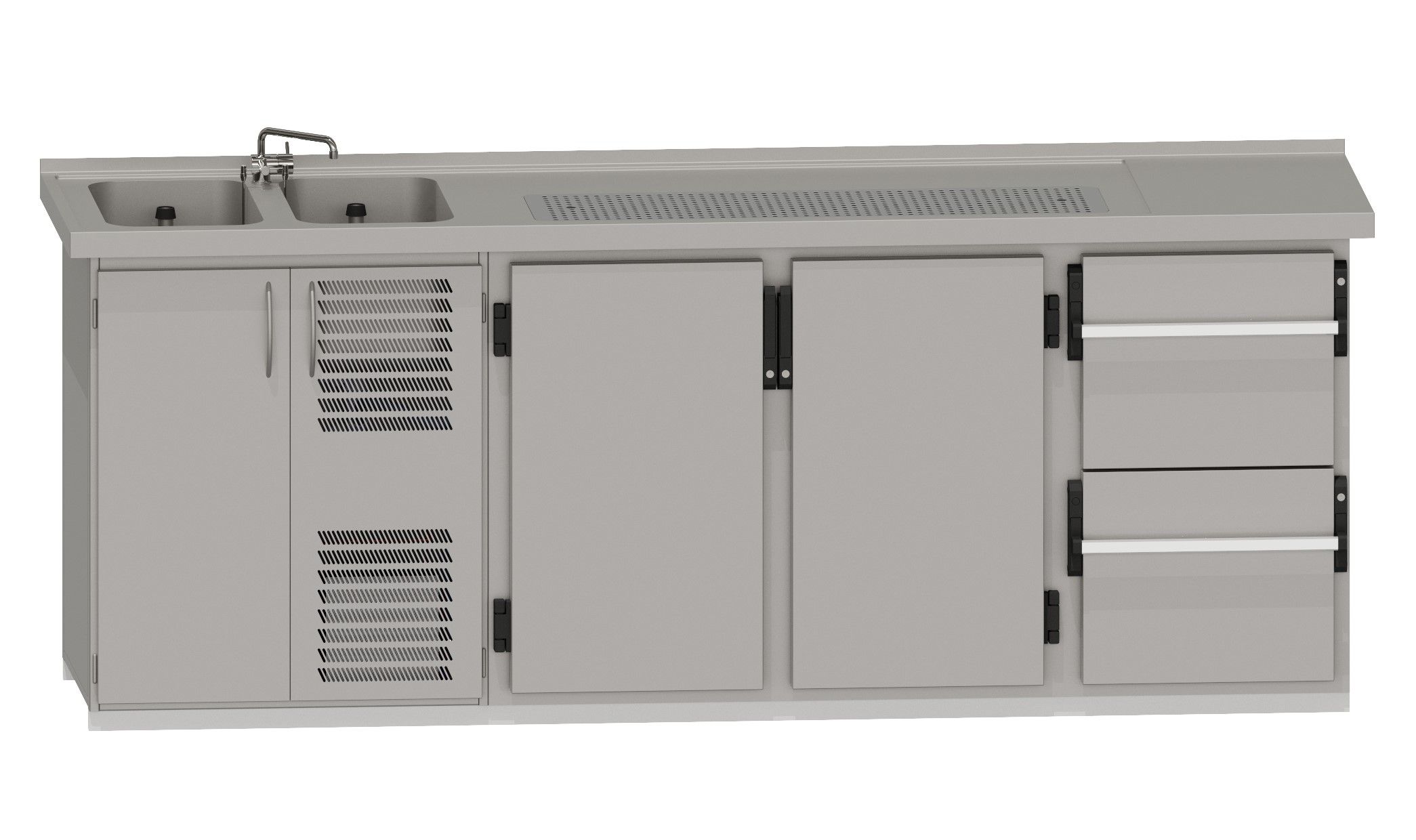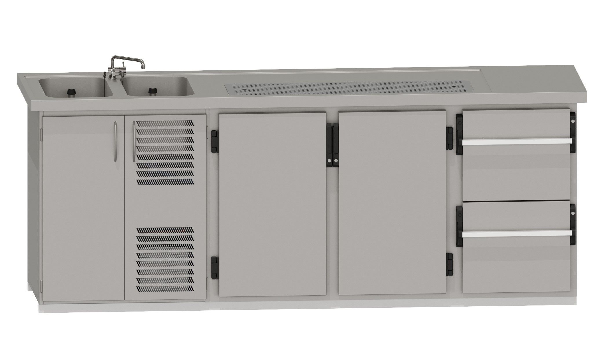 RWM 2500 G ∙ 2 Becken links2 Drehtüren, 1 CNS-Doppelauszug
