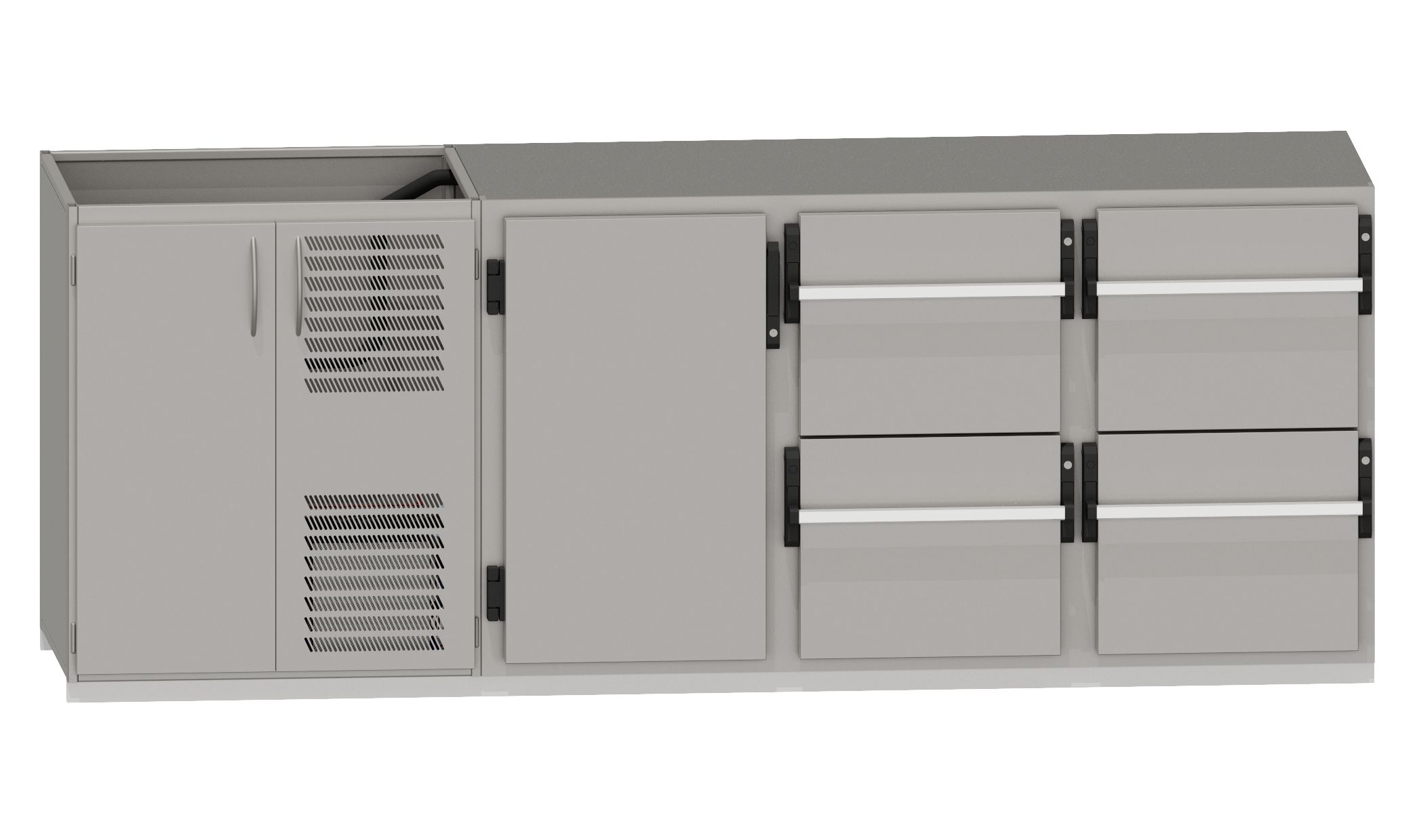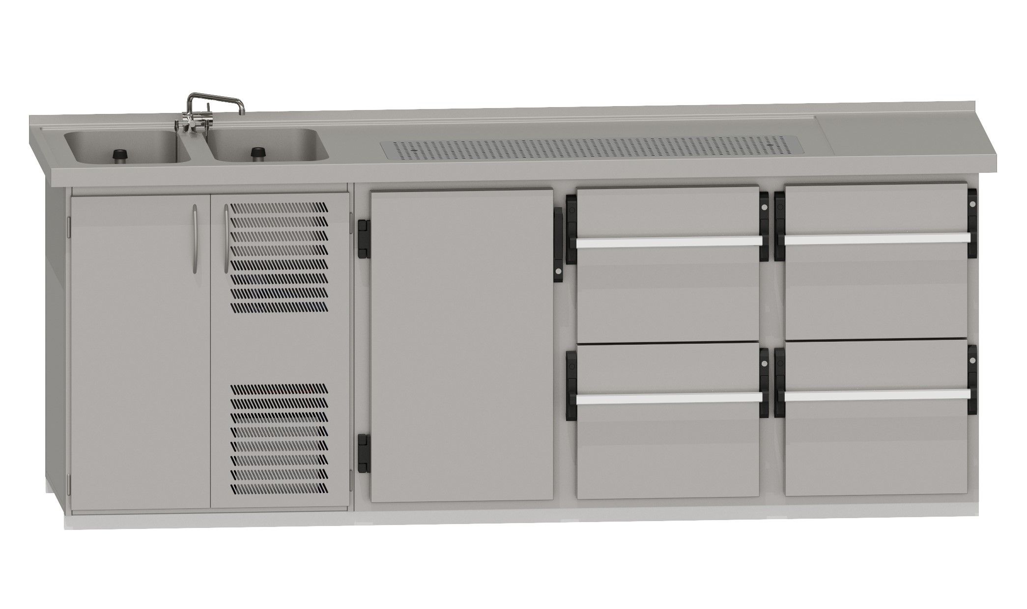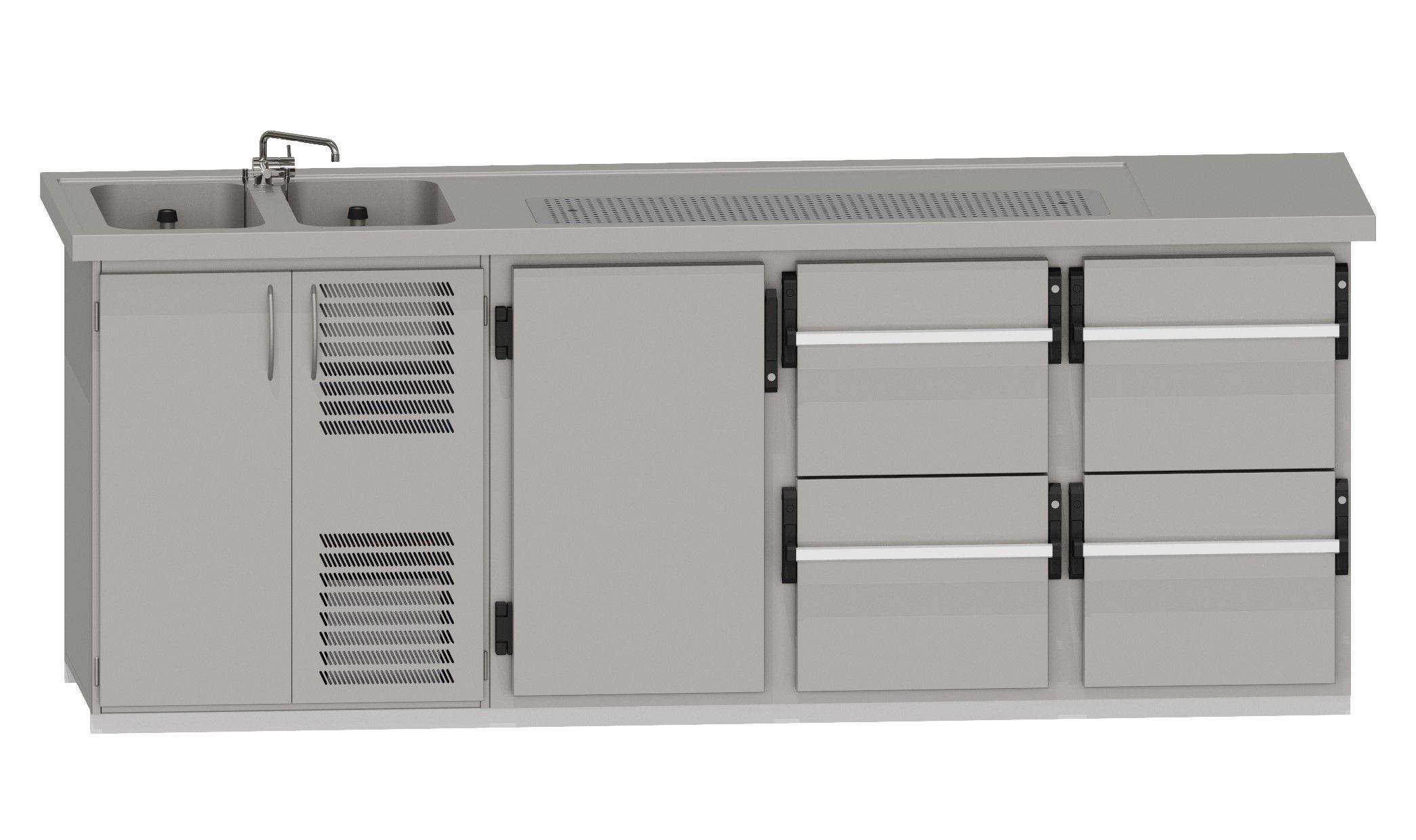 RWM 2500 G ∙ 2 Becken links1 Drehtür, 2 CNS-Doppelauszüge