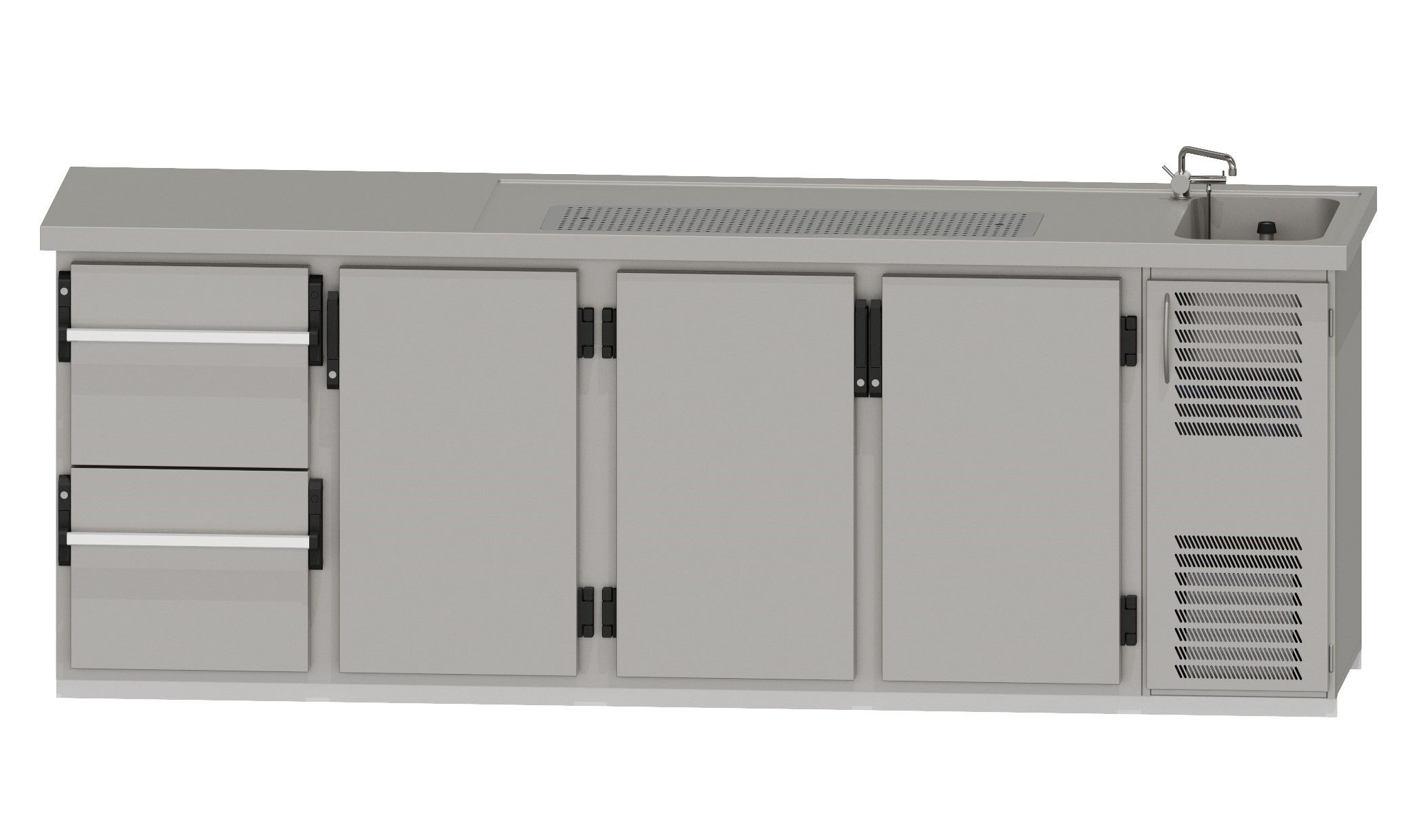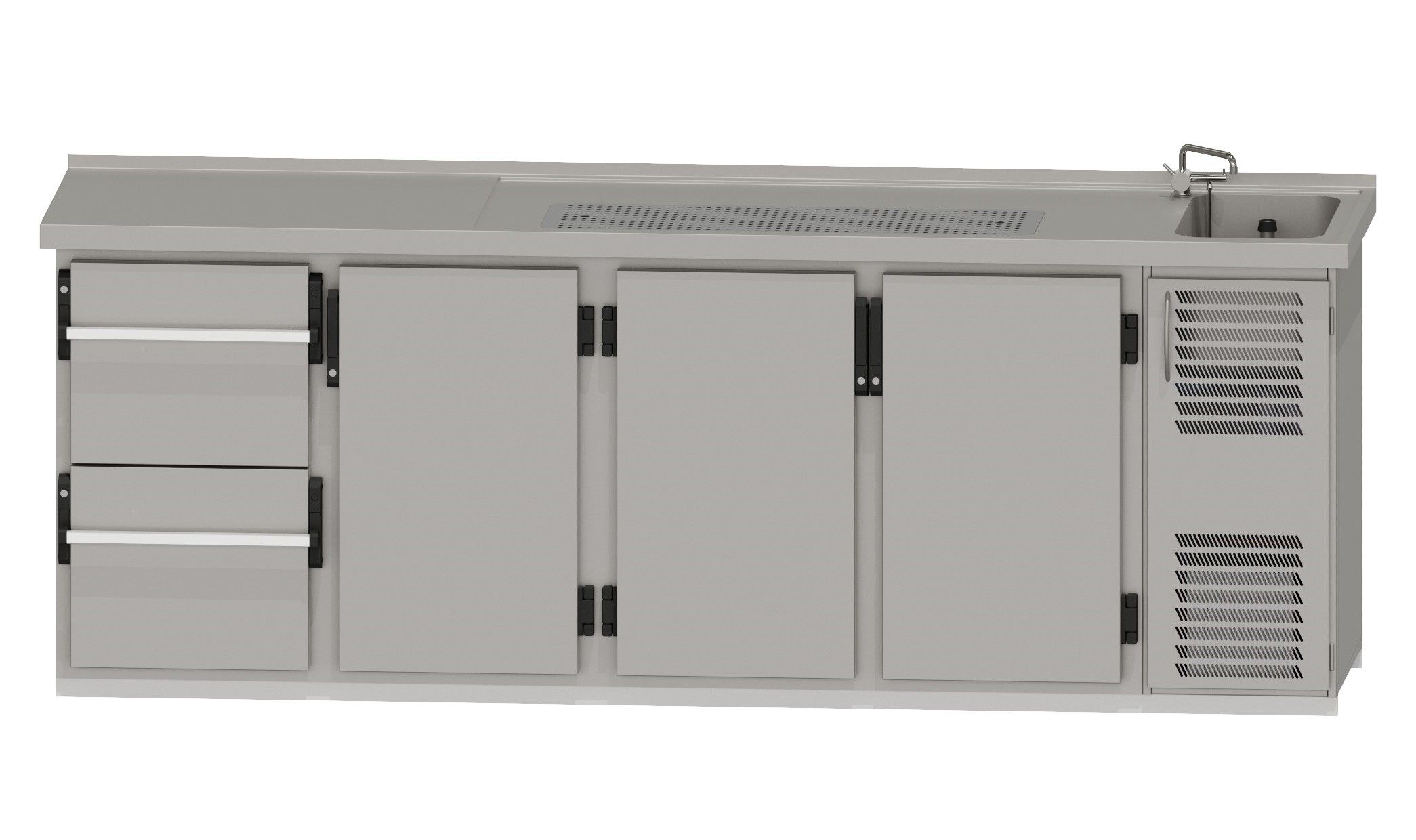 RWM 2650 G ∙ 1 Becken rechts1 CNS-Doppelauszug, 3 Drehtüren