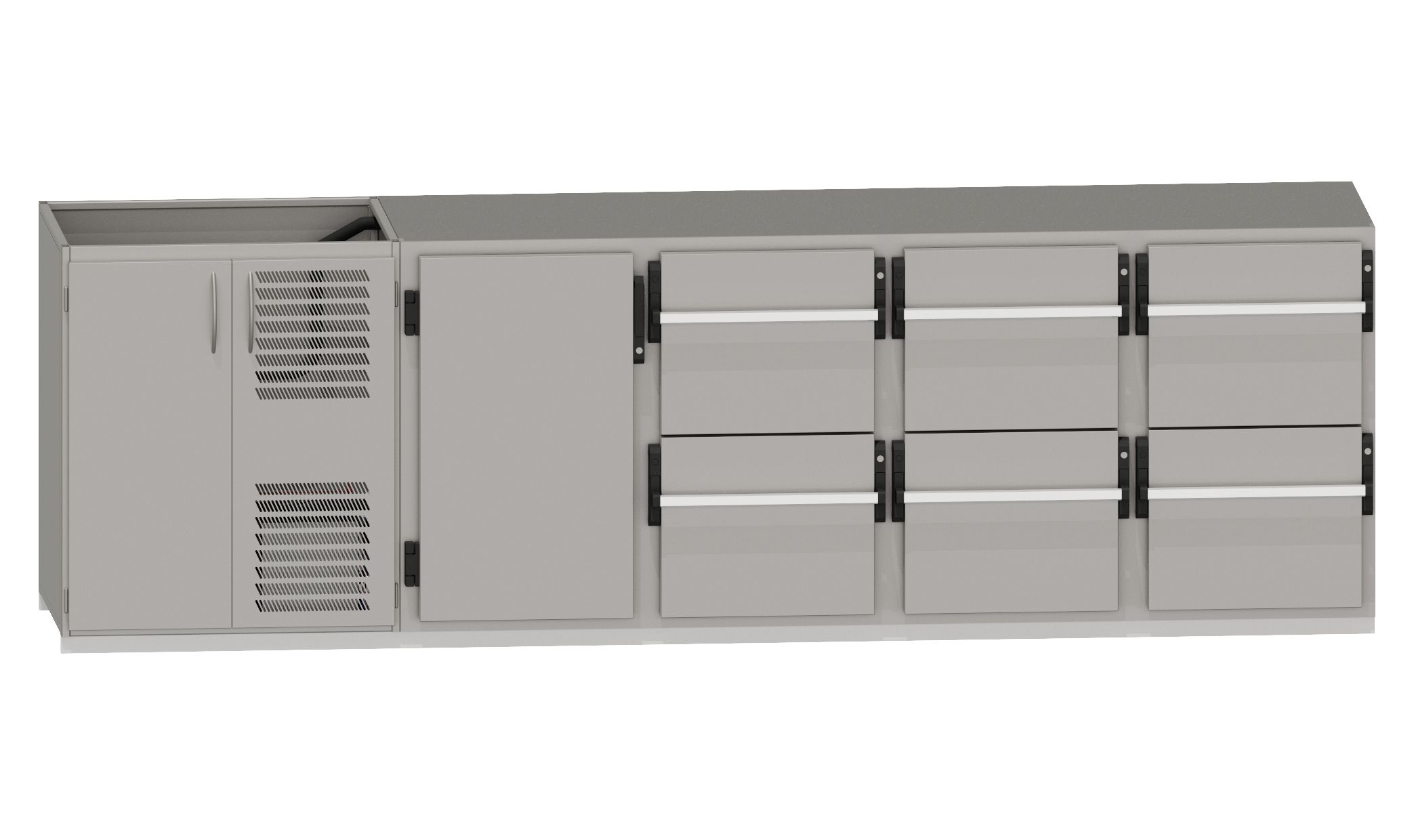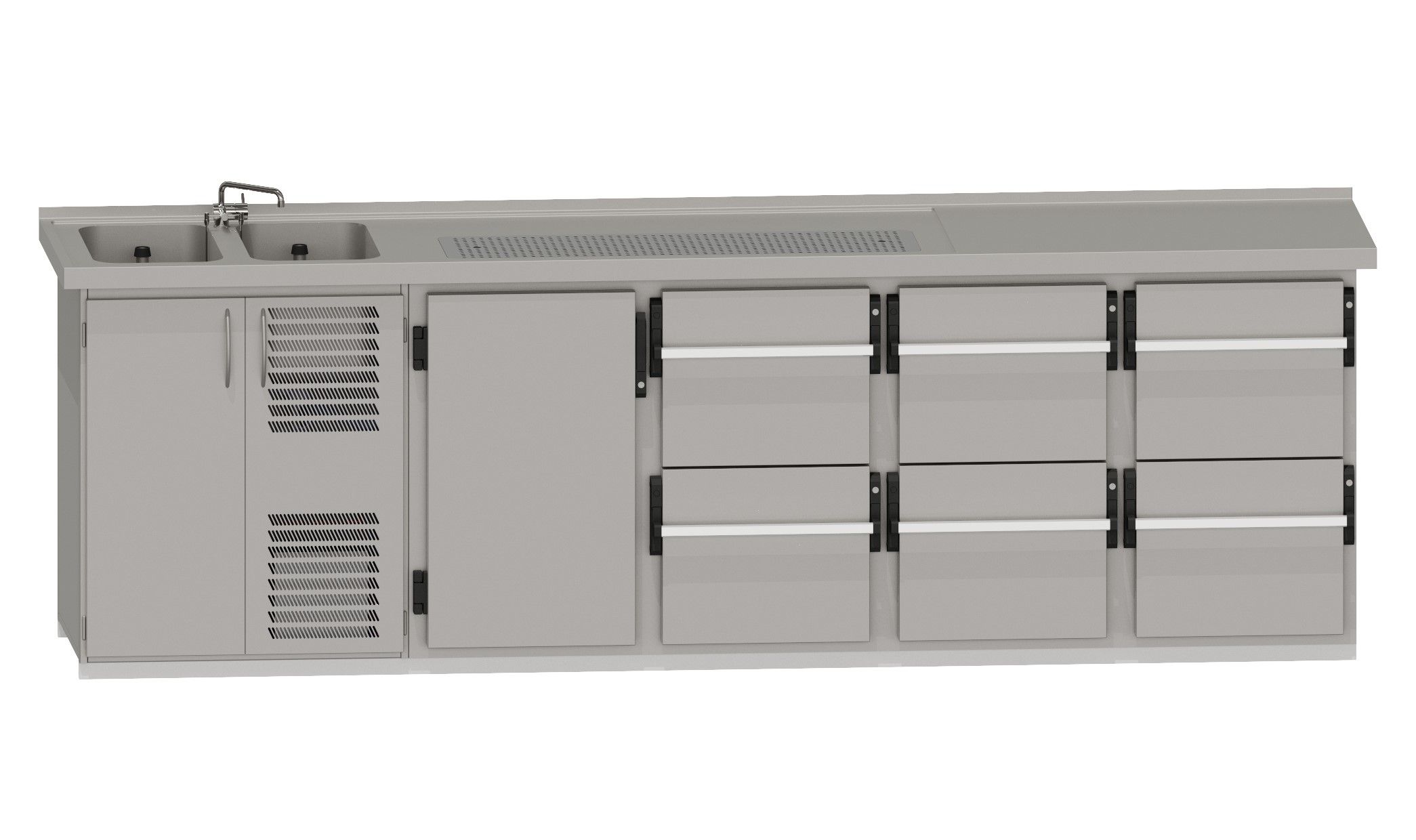RWM 3050 G ∙ 2 Becken links1 Drehtür, 3 CNS-Doppelauszüge