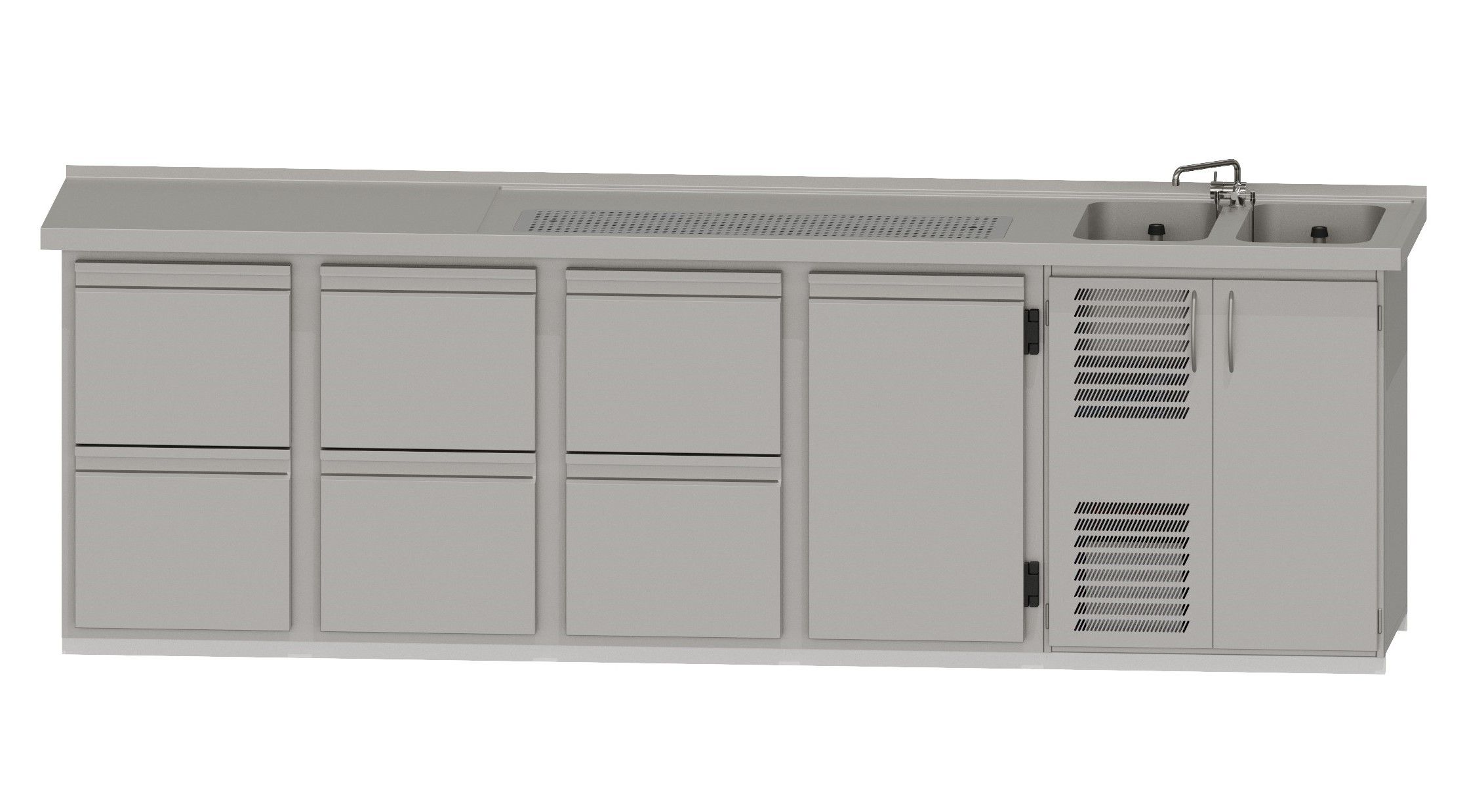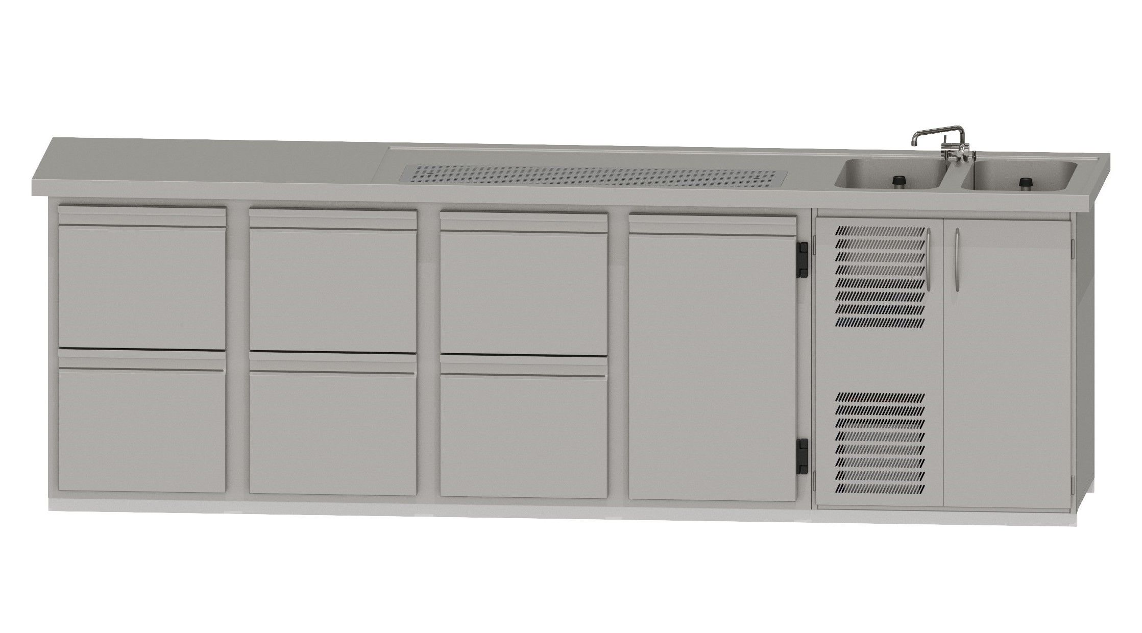 RWM 3050 E ∙ 2 Becken rechts3 CNS-Doppelauszüge, 1 Drehtür