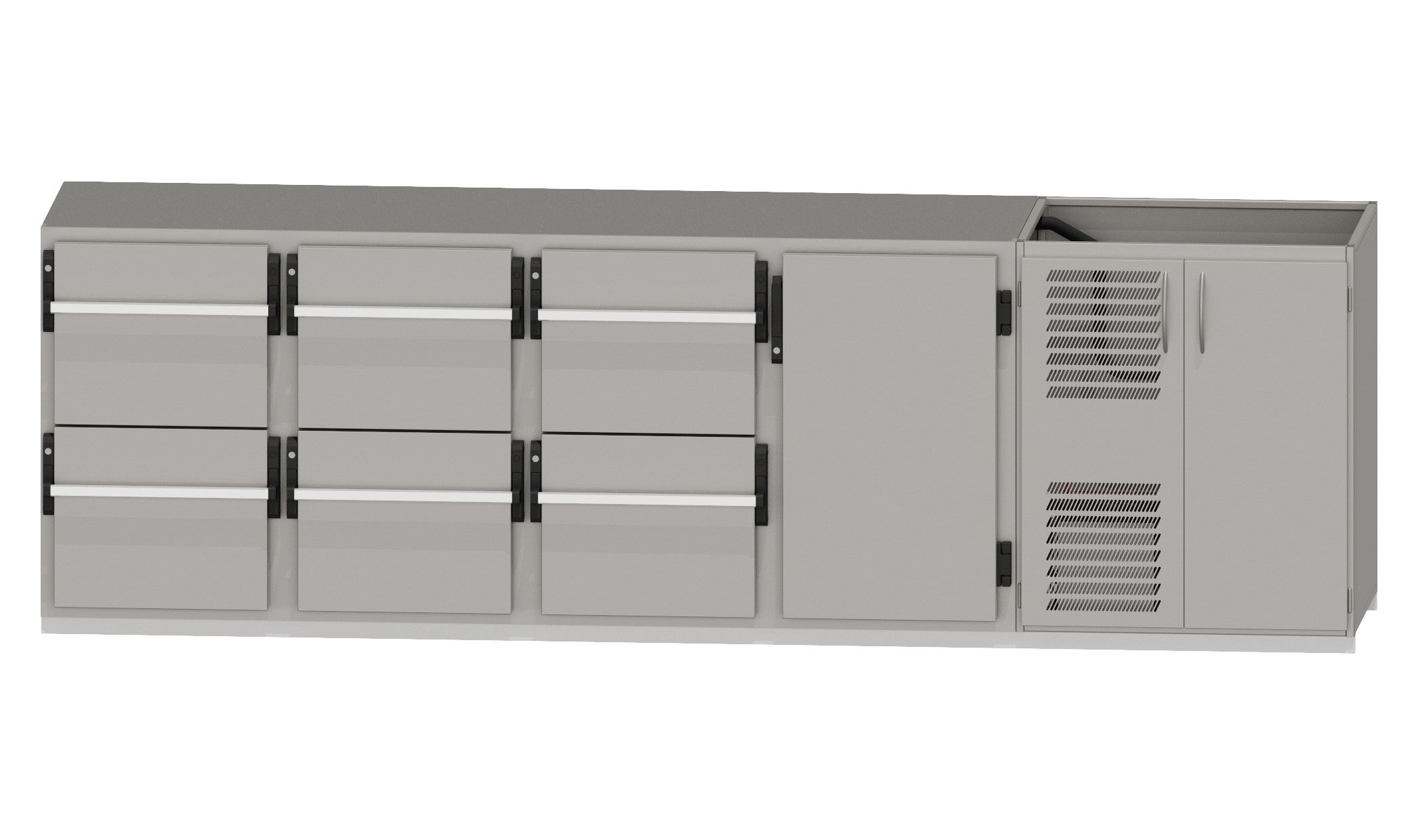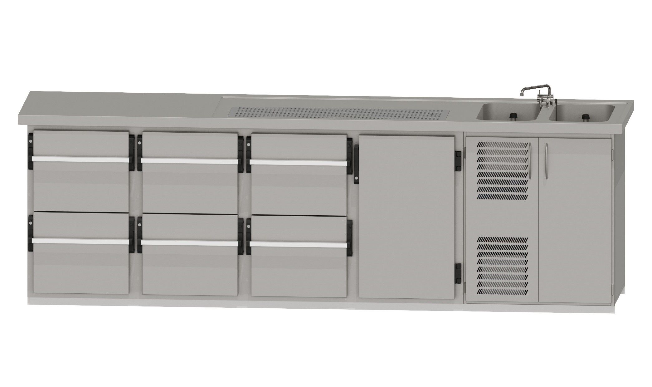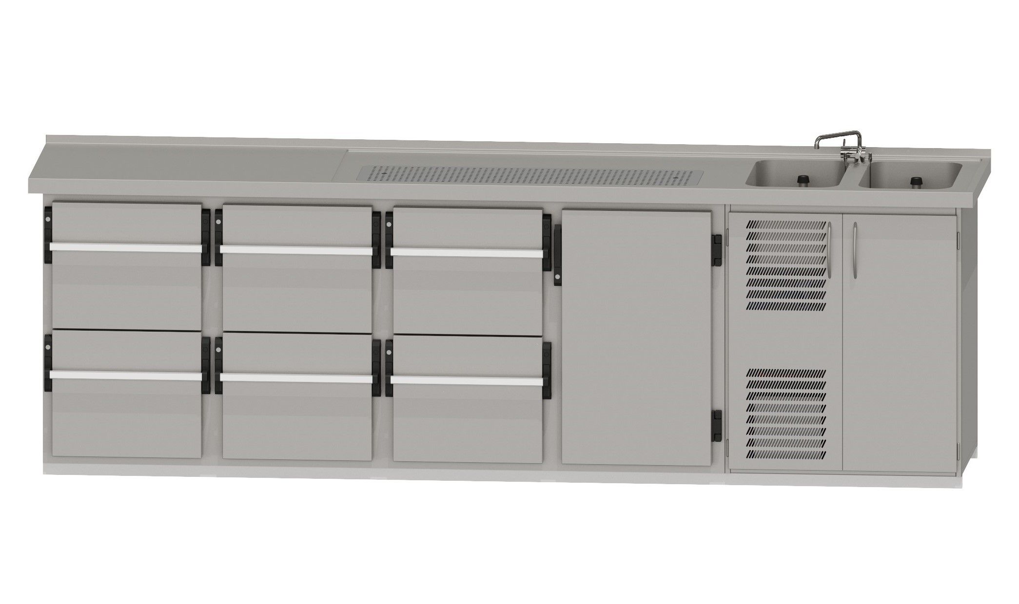 RWM 3050 G ∙ 2 Becken rechts3 CNS-Doppelauszüge, 1 Drehtür