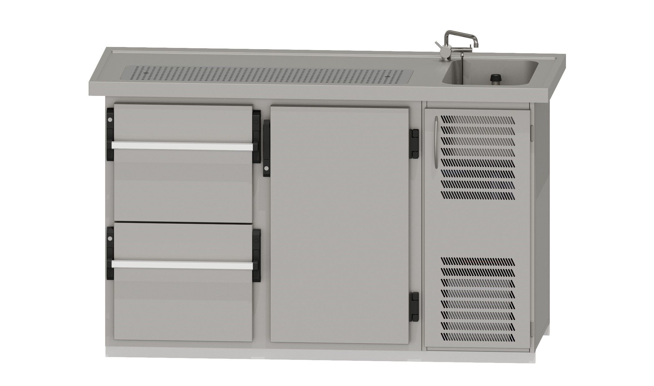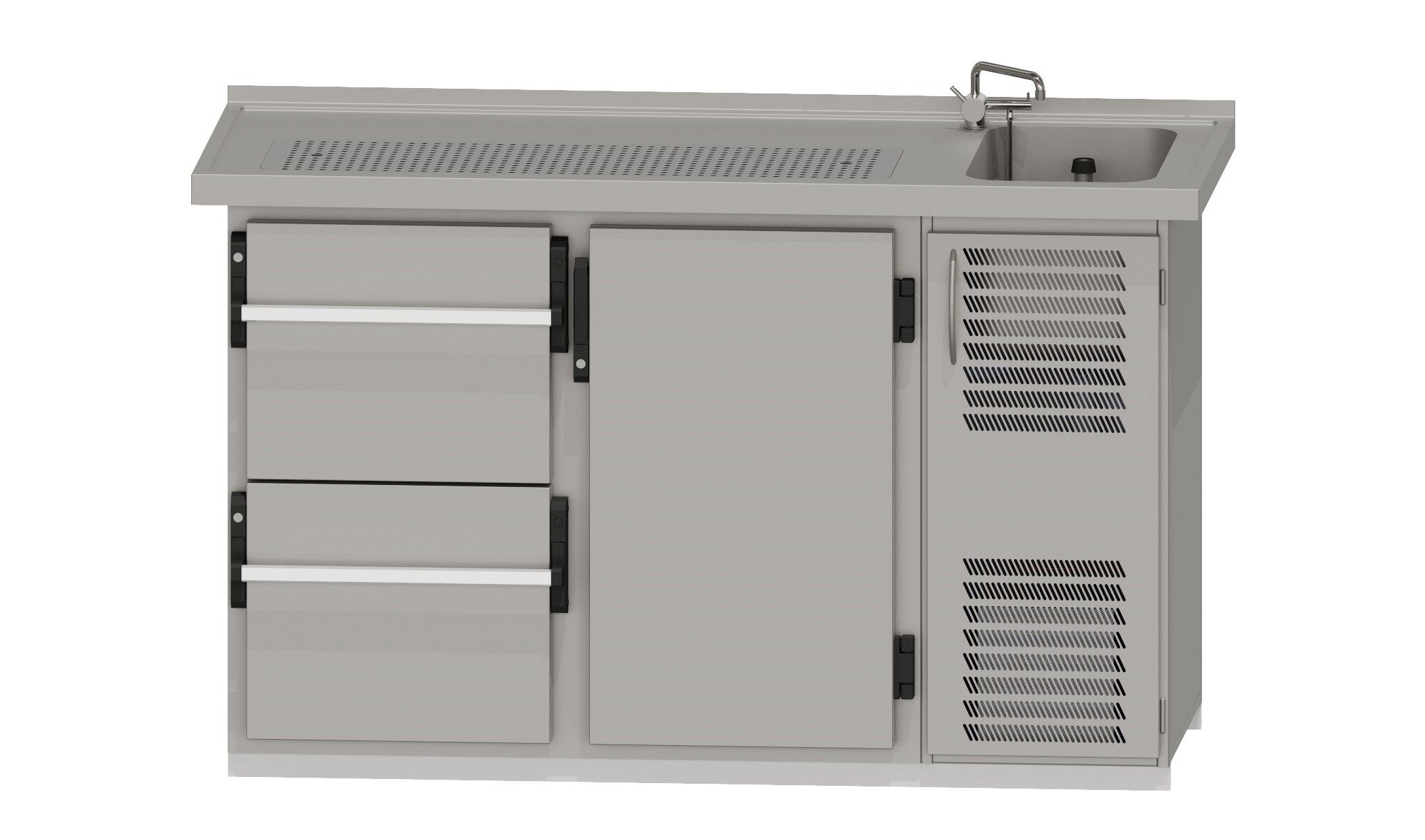 RWM 1600 G ∙ 1 Becken rechts1 CNS-Doppelauszug, 1 Drehtür