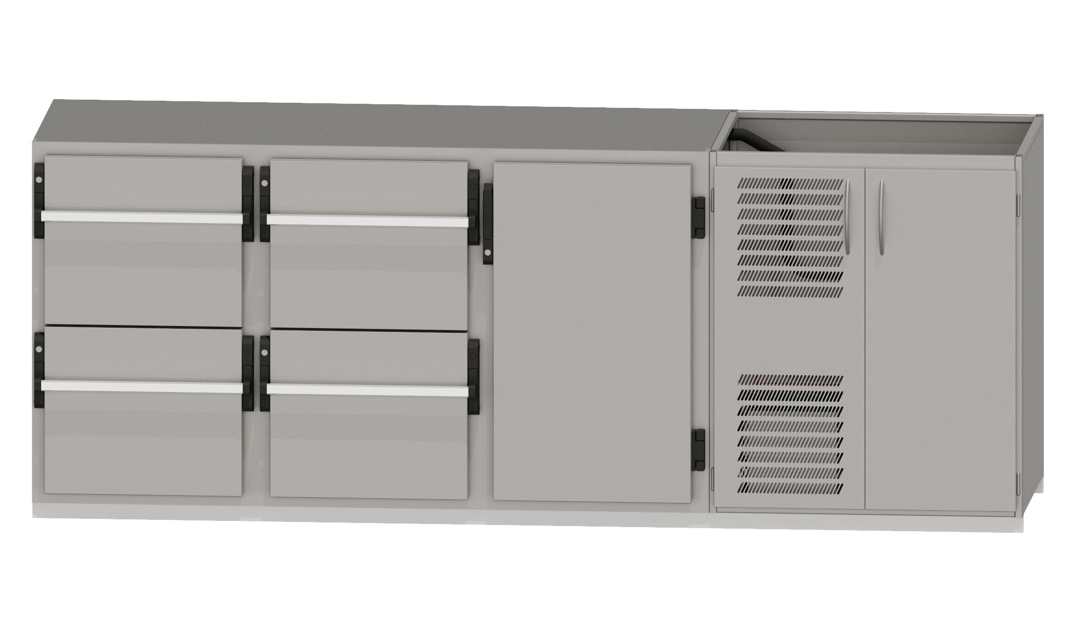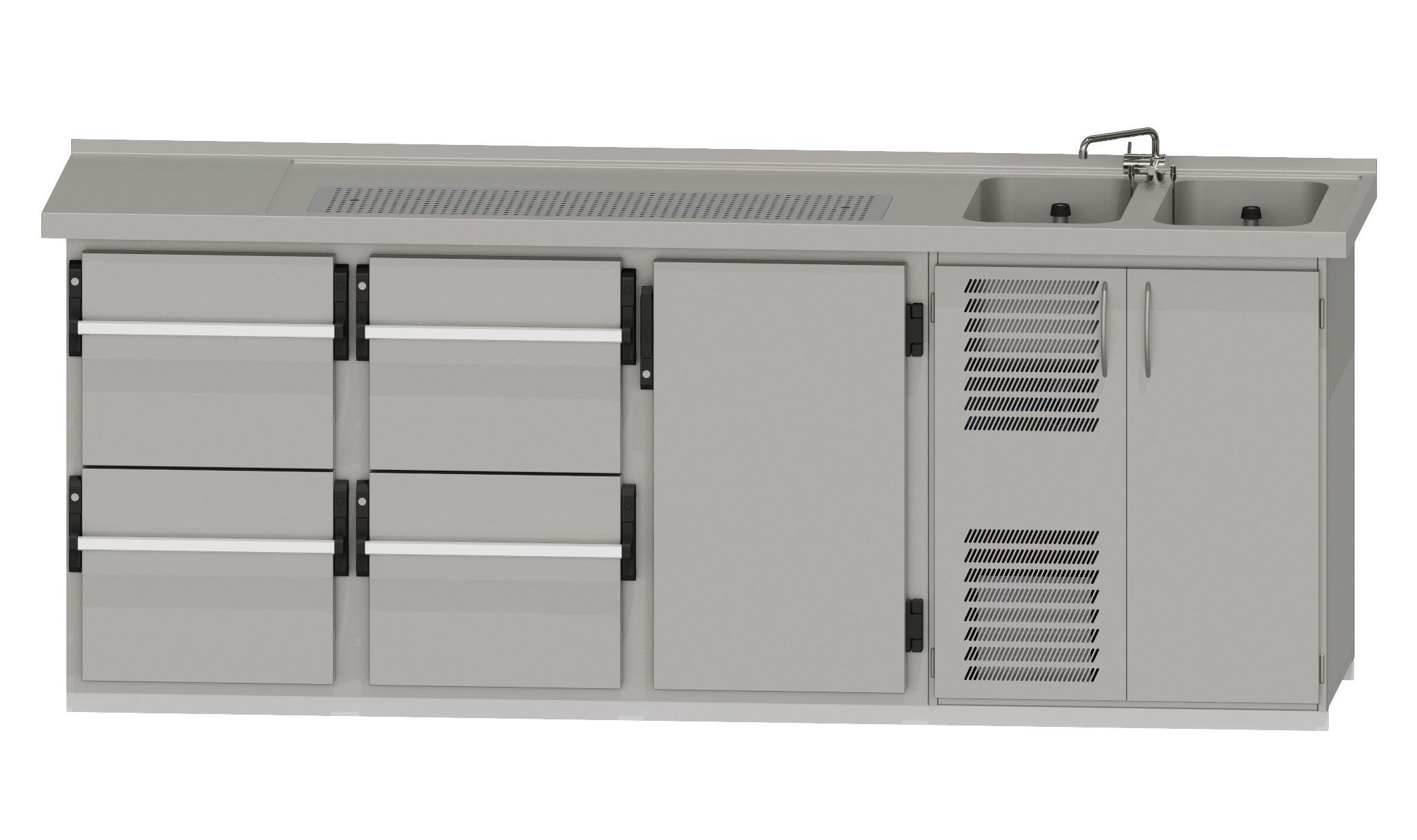RWM 2500 G ∙ 2 Becken rechts2 CNS-Doppelauszug, 1 Drehtür