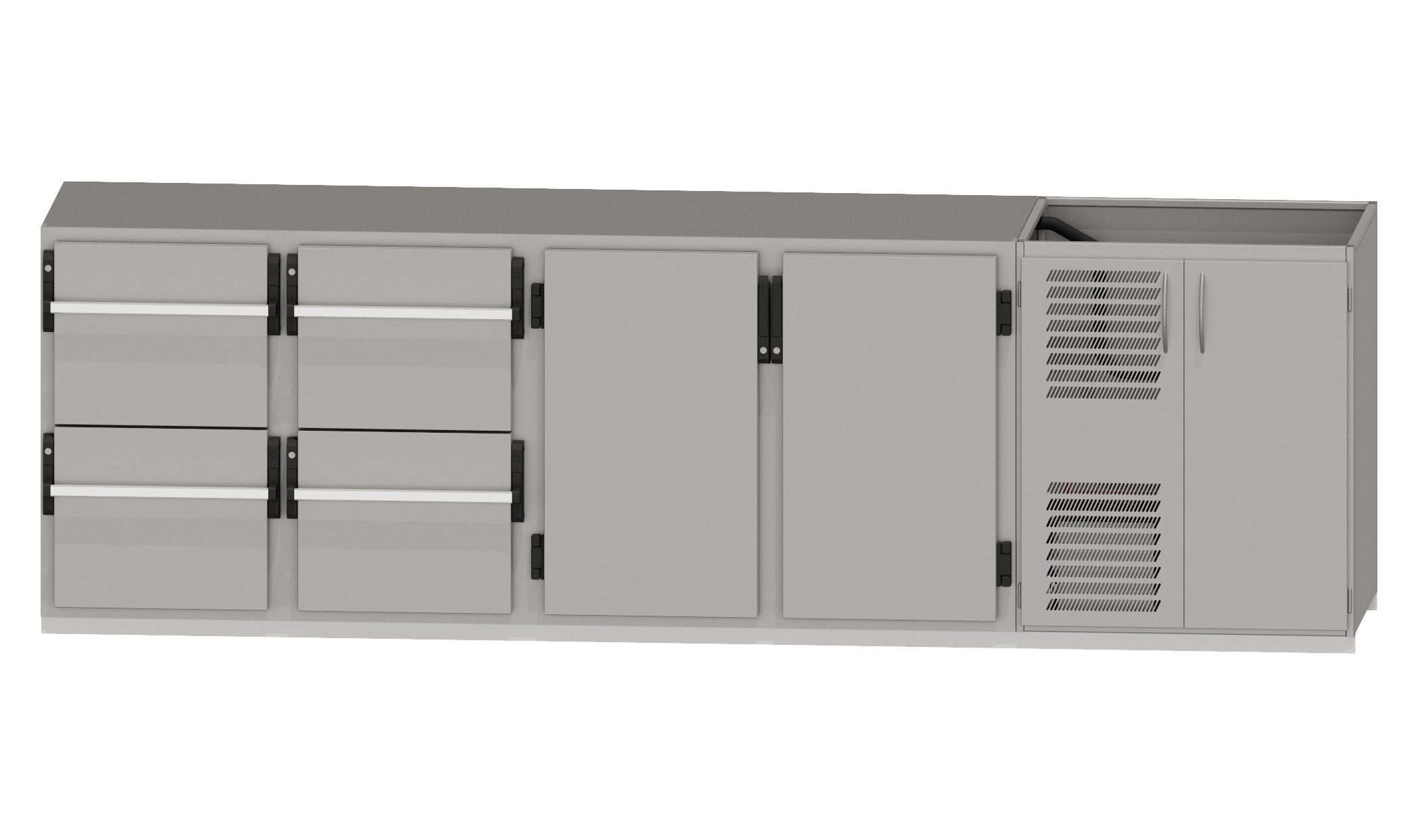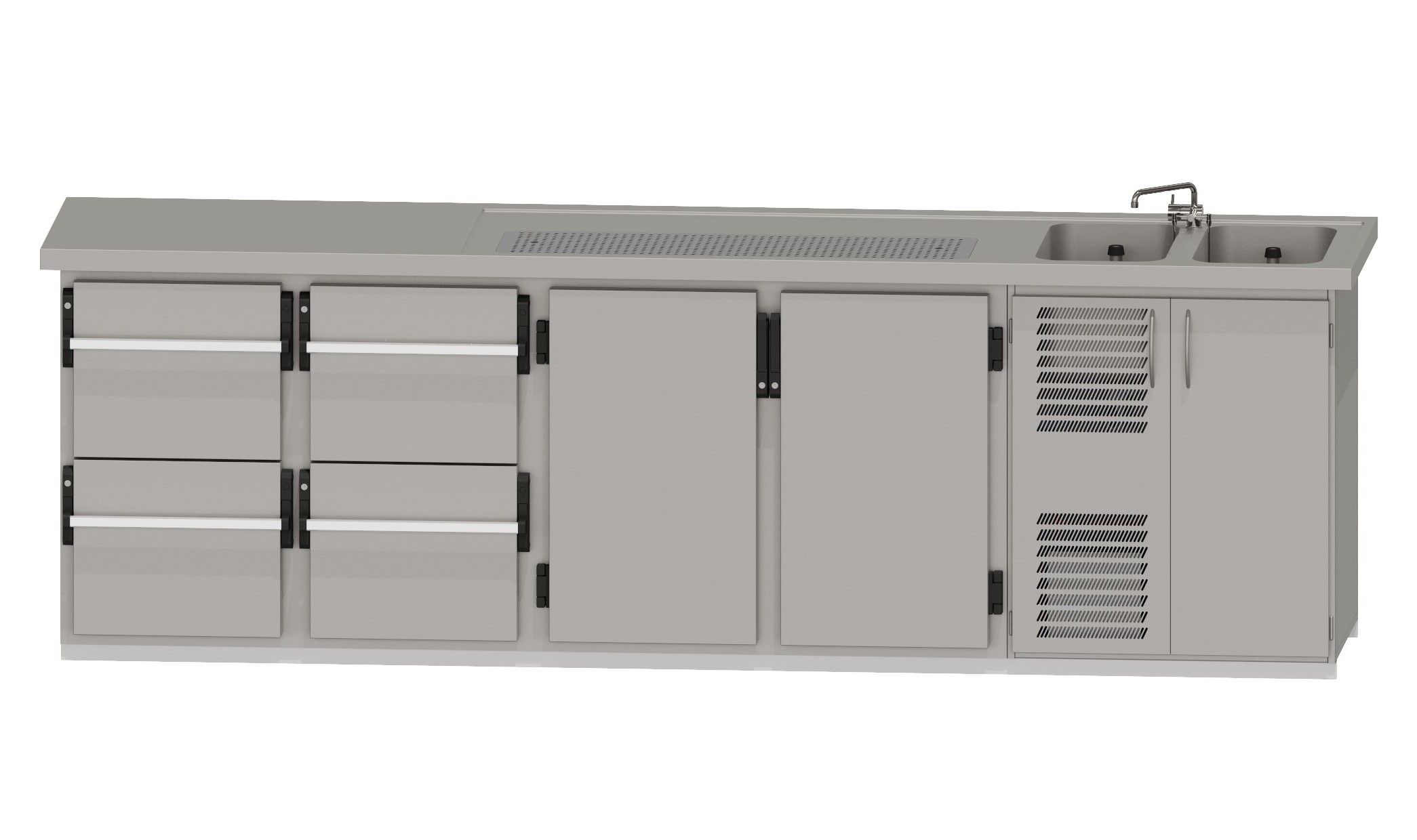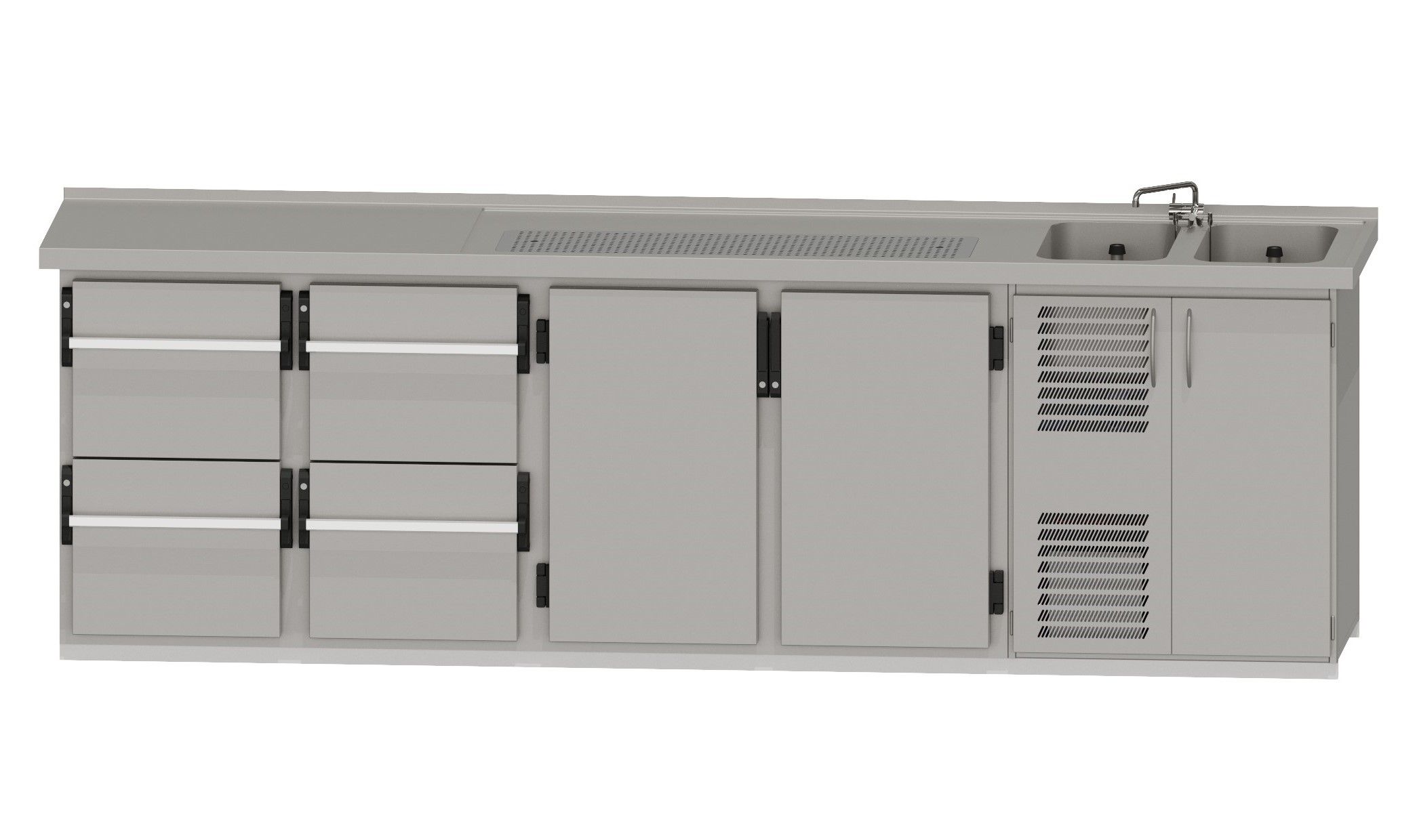 RWM 3050 G ∙ 2 Becken rechts2 CNS-Doppelauszüge, 2 Drehtüren,